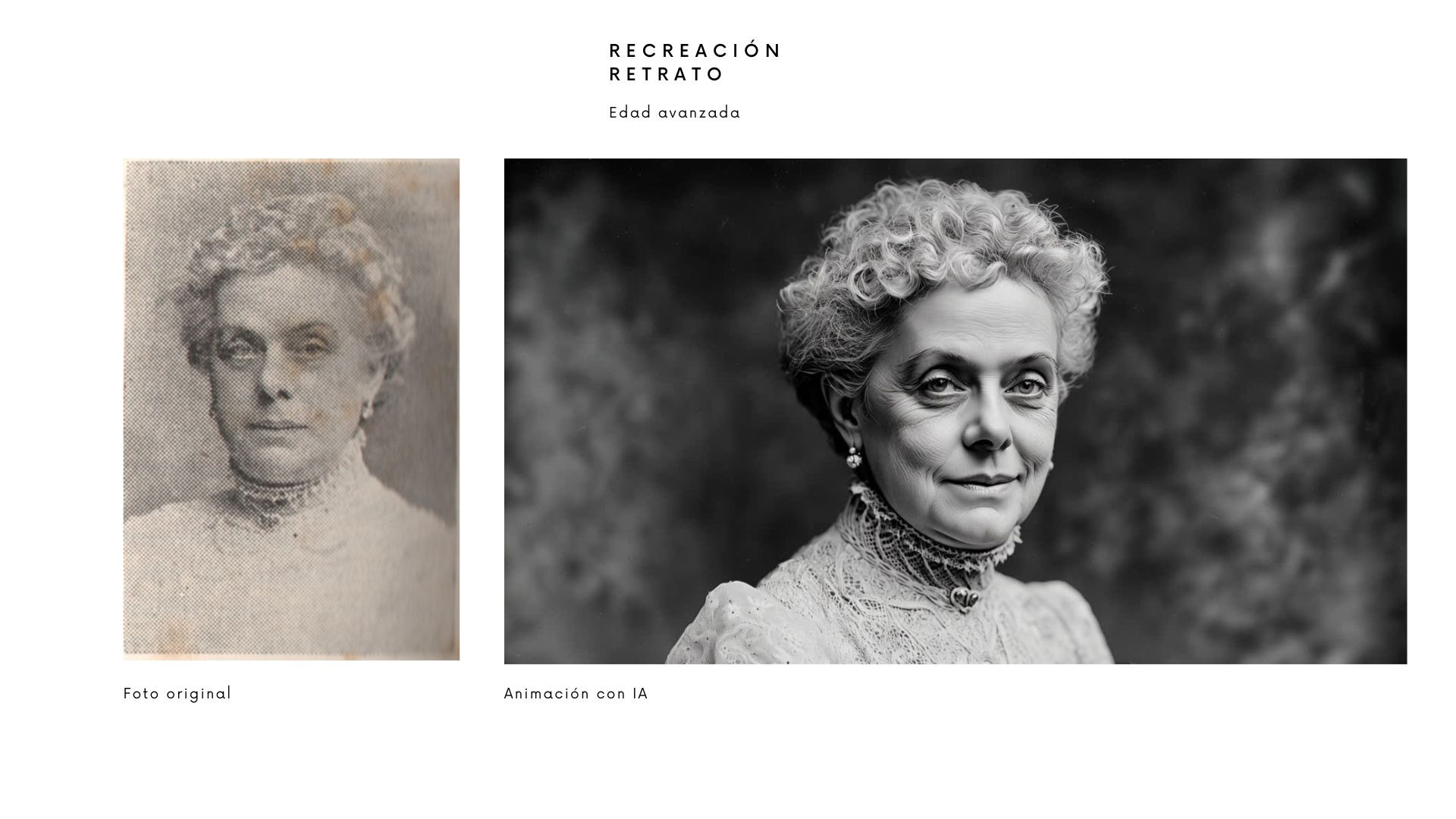 Historical research and AI-based audiovisual recreations This project involves the development of images and an audiovisual piece created using artificial intelligence for the exhibition A True Account of the Widow of Policarpo Sanz, curated by Beatriz Liz de Cea and presented at the Francisco Fernández del Riego Art Gallery in Vigo. The work is based on an extensive process of historical and documentary research into the life of Irene Ceballos Sánchez (1851–1935), widow of the Vigo philanthropist Policarpo Sanz, whose role in the city’s cultural history had largely remained overlooked. Through archival research, municipal documentation, and artistic references from the period, her social, personal, and aesthetic context was reconstructed with the highest possible level of historical accuracy. Building on this research, a series of visual recreations and a short audiovisual piece were developed to enable the “presence” of Irene Ceballos within the exhibition space. Artificial intelligence was used as a tool in the service of cultural dissemination, not to reinterpret history, but to bring a real historical figure closer to contemporary audiences through a respectful, credible, and well-documented approach. The final result is an audiovisual intervention that complements the exhibition narrative and helps highlight the artistic, cultural, and philanthropic legacy safeguarded by Irene Ceballos for nearly fifty years, reinforcing the biographical account of a key figure in the history of Vigo.